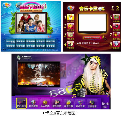 超级卡拉OK是以卡拉OK、音乐视听为核心,揉和互联网WEB2.0特性的新型家庭音乐娱乐产品。通过将KTV里卡拉OK功能搬移到IPTV系统平台上,用户足不出户便能享受到IPTV卡拉OK娱乐大餐。同时,通过各种创新性功能,用户在家不但可以享受到KTV里面尊贵的唱歌体验,更可以享受到具体互联网特性高科技功能所带来的乐趣。