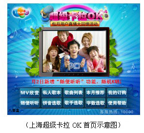 09年2月初,超级卡拉OK产品在上海地区成功上线,同年6月,中央政治局常委李长春在上海市委领导及上海文广高层领导的陪同下考察文广业务,超级卡拉OK业务被列为重点项目之一。充分体现了超级卡拉OK产品的成熟性以及产品在同行中的优势地位,目前本业务上海IPTV增值业务中点击量排行第二,仅次于游戏业务。