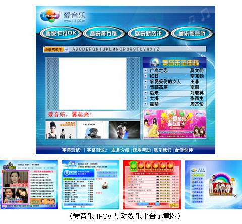 此外我们还将超级卡拉OK功能与其他功能结合,为中国电信设计了爱音乐IPTV门户。